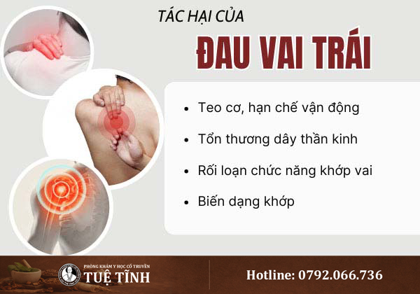 Đau bả vai trái lâu ngày khiến cơ yếu dần, giảm linh hoạt, nguy cơ teo cơ và cứng khớp.