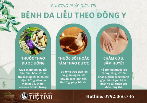 Chính vì vậy, nhiều người lựa chọn Đông y. Với nguyên lý điều trị tổng thể, Đông y vừa cải thiện triệu chứng ngoài da, vừa cân bằng cơ thể từ bên trong. Nhờ đó, bệnh da liễu được kiểm soát hiệu quả và hạn chế tái phát lâu dài.