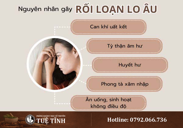 Theo Đông y, rối loạn lo âu liên quan đến sự mất cân bằng âm dương, khí huyết và tạng phủ. Một số nguyên nhân thường gặp gồm: