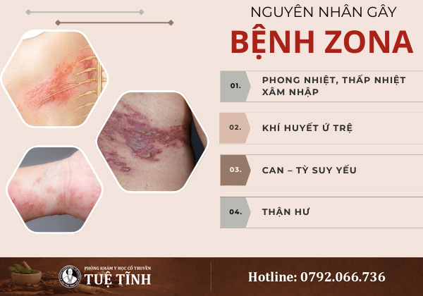 Bệnh zona thần kinh là tình trạng da nổi mụn nước thành từng dải, kèm cảm giác đau rát, ngứa ngáy, thường xuất hiện ở lưng, ngực, mặt hoặc tay chân. Theo Đông y, zona liên quan đến rối loạn khí huyết, can – tỳ – thận mất cân bằng và tà độc xâm nhập.