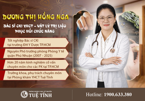 Hiện nay, bác sĩ Dương Thị Hồng Nga đang công tác tại Phòng khám Y học cổ truyền Tuệ Tĩnh