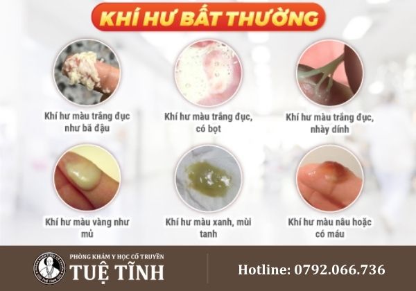• Khí hư có màu vàng, xanh, xám hoặc trắng đục như bã đậu