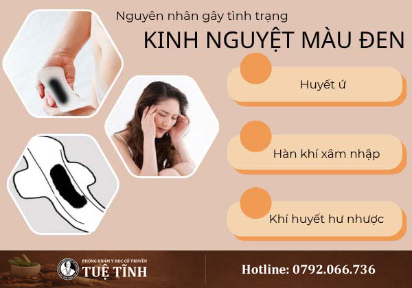 Theo Đông y, nguyên nhân chính khiến kinh nguyệt có màu đen là do khí huyết bị ứ trệ. Khi dòng khí huyết không lưu thông thông suốt, máu bị ứ đọng trong tử cung quá lâu sẽ sẫm màu, vón cục và có mùi hôi.