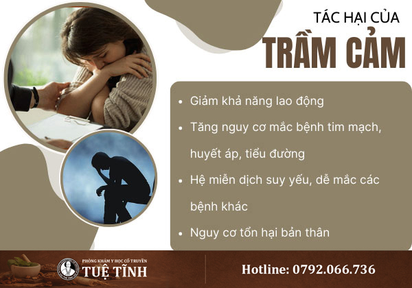 Trầm cảm để lâu dễ gây nhiều hệ lụy nguy hiểm. Hãy đến Phòng khám Y học cổ truyền Tuệ Tĩnh để được thăm khám và điều trị sớm. Điều trị bằng y học cổ truyền sẽ giúp ổn định tinh thần, cải thiện giấc ngủ, nâng cao chất lượng cuộc sống.