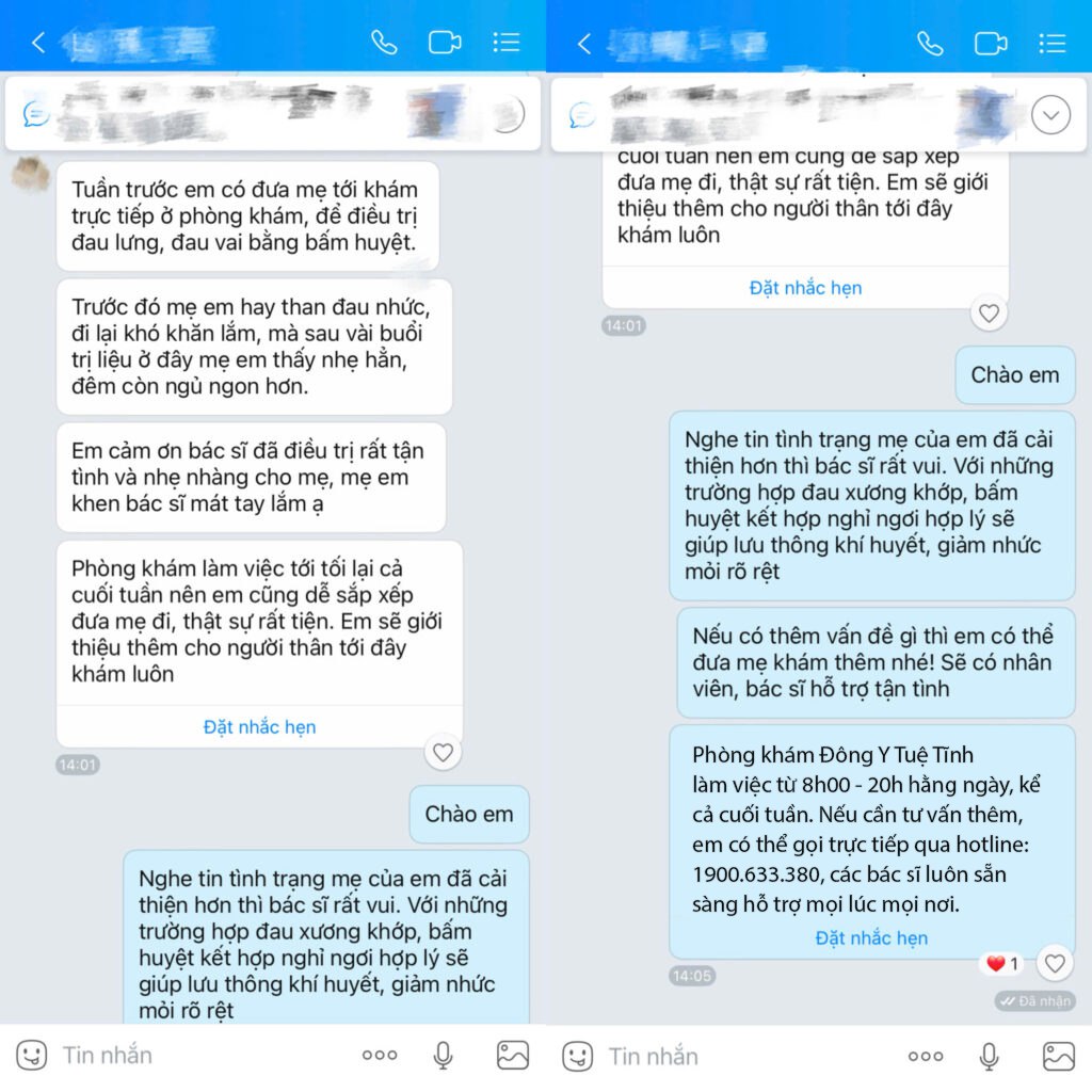 Phản hồi của bệnh nhân sau khi điều trị tại Phòng khám Y học cổ truyền Tuệ Tĩnh